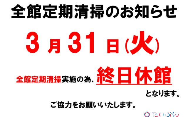 【トレーニングルーム定期点検】のお知らせ(1月18日)