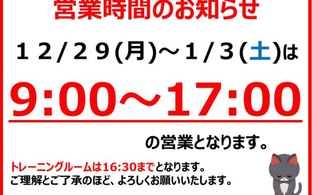 【トレーニングルーム時間変更】のお知らせ(12月12日)