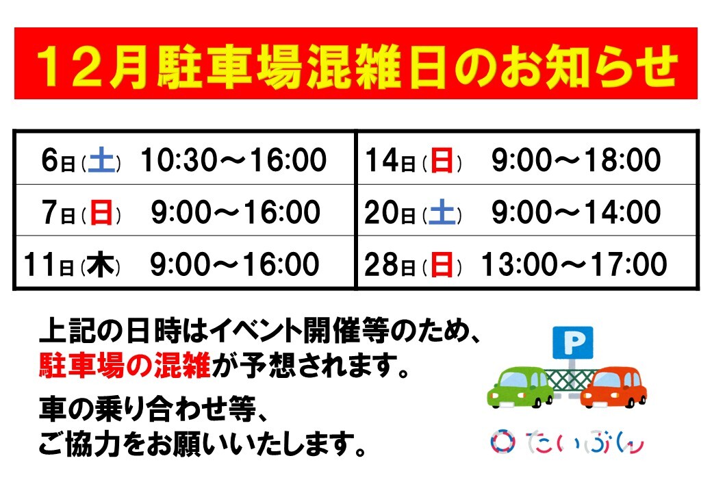 【12月駐車場混雑日】のお知らせ
