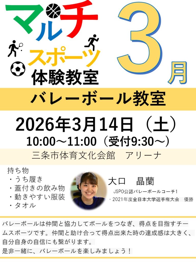 【マルチスポーツ体験教室】開催のお知らせ(3月14日)