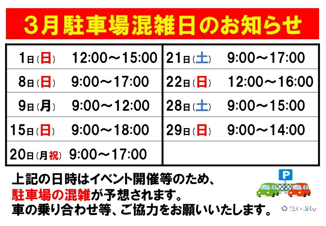 【3月駐車場混雑日】のお知らせ